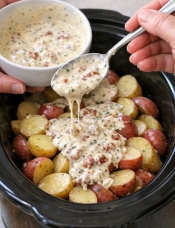 These Slow Cooker Creamy Ranch Potatoes with Bacon & Cheese are the ultimate comfort side dish—rich, creamy, and packed with …