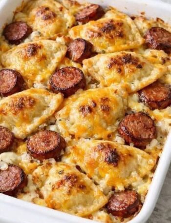 This Cheesy Pierogi & Kielbasa Casserole is a rich, comforting dish loaded with soft pierogi, smoky sausage, and a creamy, …