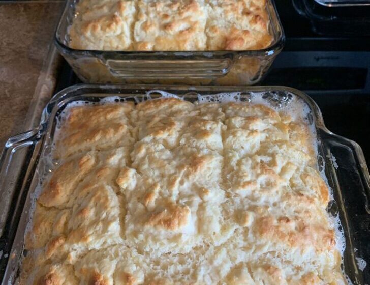 This simple homemade recipe is TO DIE FOR! The butter makes these biscuits soft and moist on the inside, with a flaky crust on the outside. Add a little jam or jelly, and you’ve got heaven.