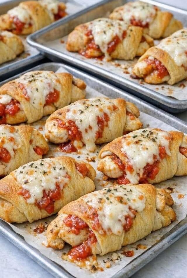 These Cheesy Chicken Crescent Rolls are a quick and satisfying meal made with tender chicken, melty mozzarella, and rich marinara sauce wrapped in buttery, flaky dough. Think of them as a fun mashup between pizza and stuffed rollsโ€”perfect for busy nights or casual family dinners.
