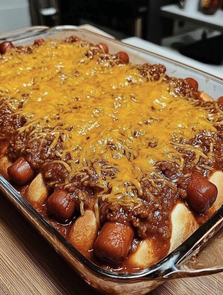 This Chili Cheese Crescent Hot Dog Bake is the ultimate comfort-food casserole—warm, cheesy, and incredibly easy to throw together. Juicy hot dog slices are layered with savory chili, melty cheddar cheese, and flaky crescent dough, then baked until golden and bubbly. It’s everything you love about chili dogs, turned into a cozy, shareable dish that’s perfect for busy weeknights, game days, or casual family dinners.