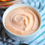 In a small bowl, whisk together Greek yogurt, mayonnaise, Parmesan cheese, Dijon mustard, lemon juice, lemon zest, herbs, and paprika until smooth and creamy.
