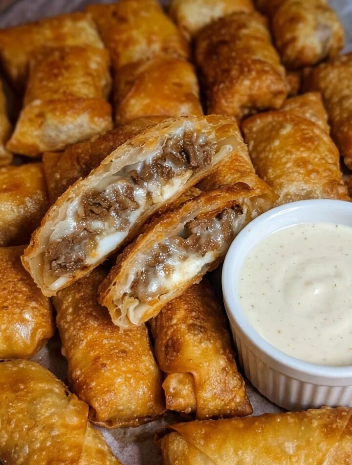 Philly Cheesesteak Egg Rolls are a crave-worthy fusion appetizer that combines the bold flavors of a classic Philadelphia cheesesteak with the irresistible crunch of a golden egg roll wrapper. Tender shaved beef, sweet caramelized onions, and melted cheese are tightly wrapped and fried until perfectly crisp. Every bite delivers a satisfying contrast of textures and rich, savory flavor, making these egg rolls a standout appetizer or snack.