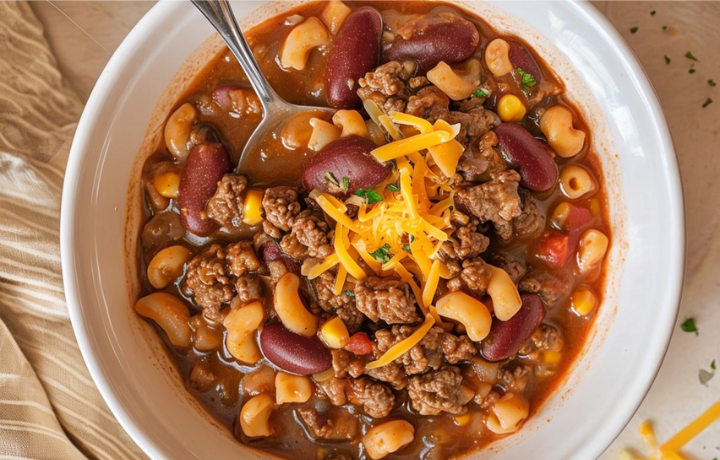 As the chili slow-cooks, the flavors deepen and blend beautifully, creating a thick, cozy meal that wraps around every bite of pasta. Finished with your favorite toppings like shredded cheese or sour cream, this dish is comforting, budget-friendly, and guaranteed to please the whole family.