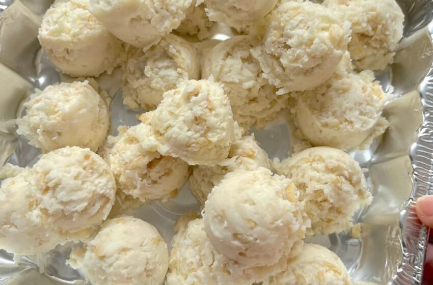 Stir in the slivered almonds, shredded coconut, and Rice Krispies cereal. Mix until everything is completely coated. - Scoop the Snowballs